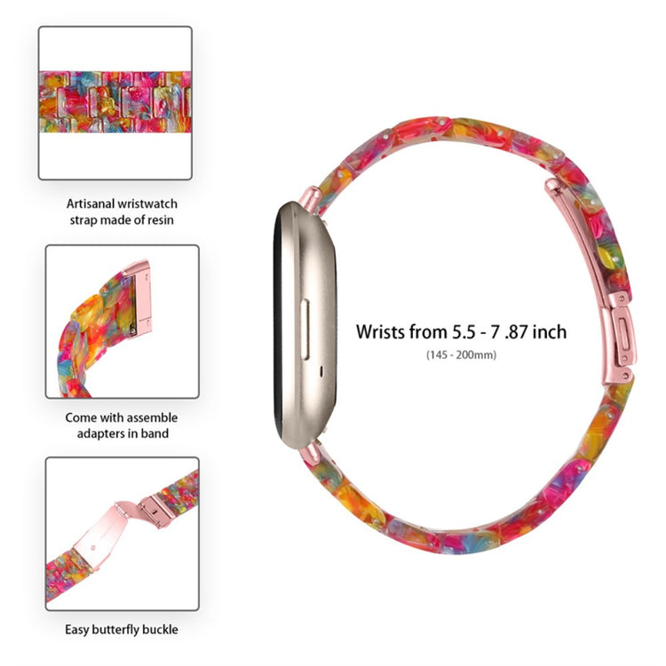 Oppgrader smartklokken din med vårt stilige Resin Band for Fitbit Versa 4 / Sense 2. Dette armbåndet er laget av høy-kvalitets harpiksmateriale som er både vann- og rustmotstandsdyktig, noe som sikrer langvarig holdbarhet. Hvert enkelt stykke er håndpolert av erfarne håndverkere, noe som gir et unikt preg til hvert armbånd. Den lettvekts designen gjør det behagelig å bruke hele dagen, enten du er på jobb, i et møte, eller på fest. Med en dobbel trykkknapp sikkerhetslås på klokken kan du være trygg på at armbåndet sitter godt. Det treperlede harpikssløyfen med rustfritt ståladapter gjør det enkelt å fjerne og bytte armbåndet, slik at du kan tilpasse stilen din til enhver anledning. Om du skal på reise, delta i en forretningspresentasjon eller noe så enkelt som en middag med venner, er dette armbåndet den perfekte følgesvennen. Med en bredde på 20 mm og passform for håndleddet mellom 5.5-7.87 tommer, gir det et variert tilpasningsalternativ for flesteparten. Velg vårt Resin Band for en kombinasjon av eleganse og funksjonalitet i din hverdagsstil.