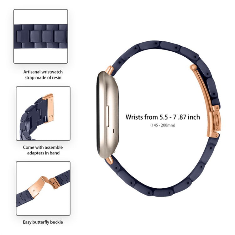 Vår klokkerem for Fitbit Versa 4 / Sense 2 er det perfekte tilbehøret for å oppgradere stilen din. Laget av høykvalitets resinmateriale, er denne remmen både vann- og rustbestandig, noe som sikrer langvarig bruk. Hver del er håndpolert av erfarne håndverkere, noe som gir en unik og elegant finish. Med en dobbel trykklås gir det ekstra sikkerhet, så du kan bruke klokka med trygghet under alle anledninger. Den tre-perle design tilfører et subtilt preg av luksus, perfekt for spesielle anledninger som dater, møter, fester, reiser og forretningsarrangementer. Med en ståladapter og enkel av- og pålegging, er denne remmen også pratisk. Passer til håndleddsomkrets mellom 5.5-7.87 tommer (145-200 mm), og er derfor ideell for de fleste. Unn deg selv eller en nærstående denne stilig og funksjonelle klokkerem i dag!