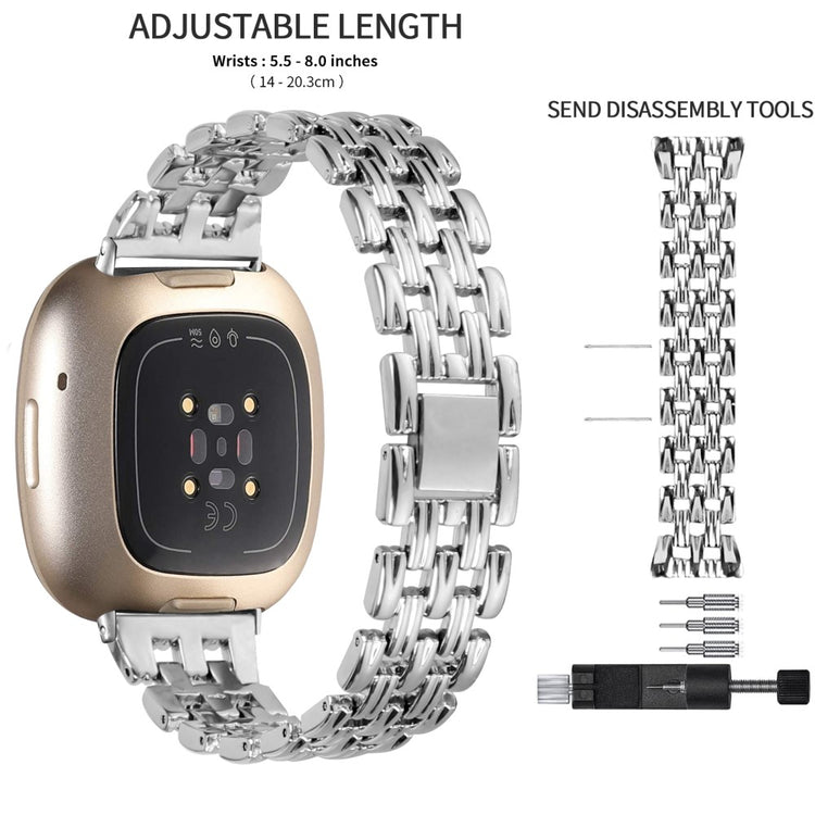 Ved å oppgradere til dette eren stålremmen til din Fitbit Versa 4 / Sense 2, får du ikke bare et stilrent utseende, men også en komfortabel og holdbar løsning. Laget av polert rustfritt stål, unngår du de billige alternativene som zink eller aluminium, noe som sikrer at remmen smidig omslutter håndleddet ditt og gir deg en behagelig opplevelse hele dagen. Den elegange 5-perle designen tilfører et klassisk og tidløst preg som passer til enhver anledning. Er du lei av den gamle, ødelagte remmen? Dette er den ideelle erstatteren som kombinerer både stil og funksjonalitet, perfekt for den moderne bruker.
