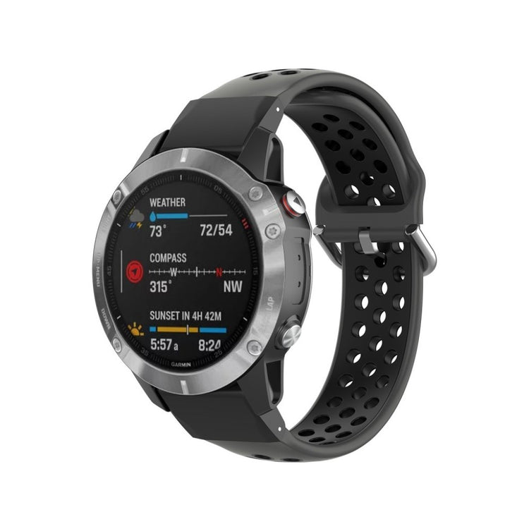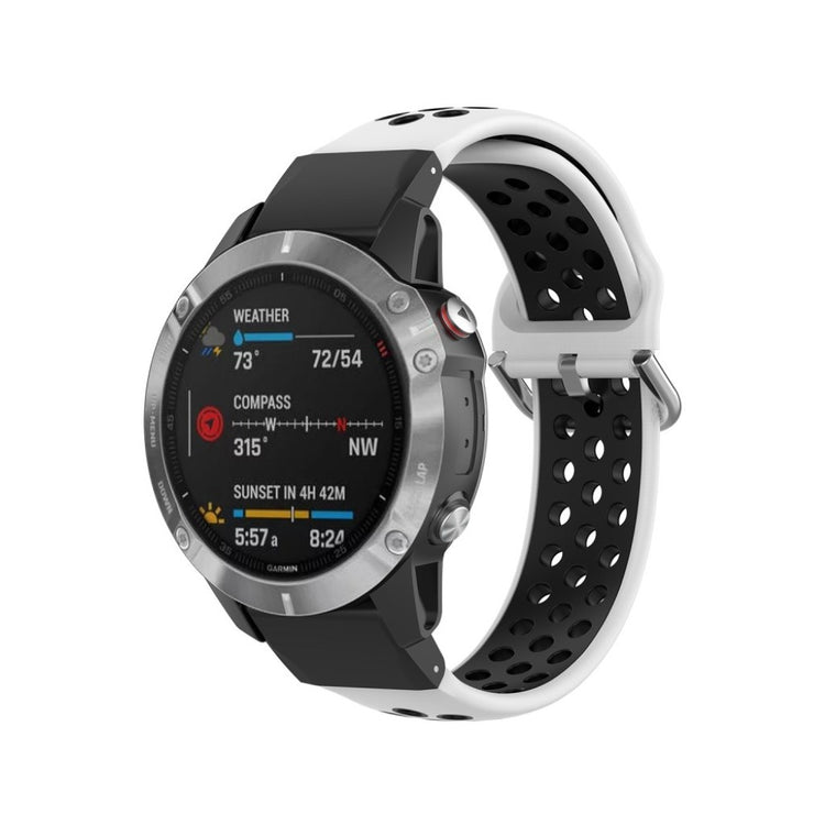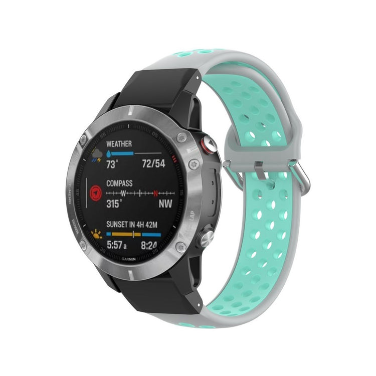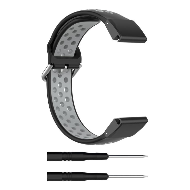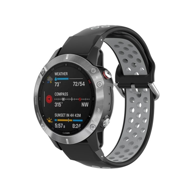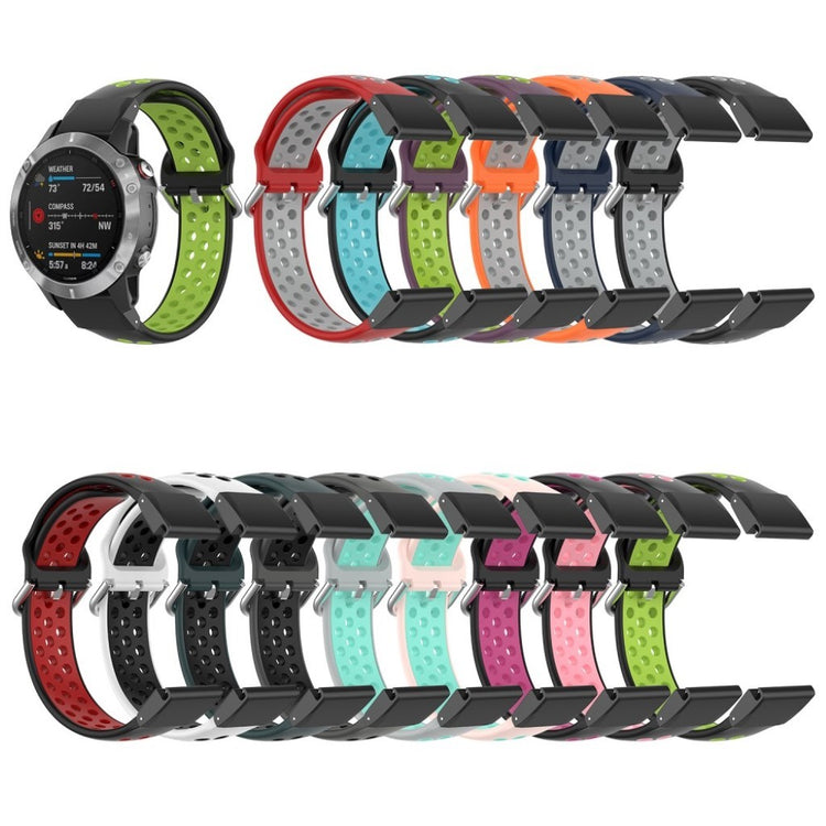 Denne tofarget silikonreimen gir din Garmin Fenix-klokke et moderne utseende. Det myke silikonmaterialet med hull sørger for rask varmeavledning og komfortabel bruk.