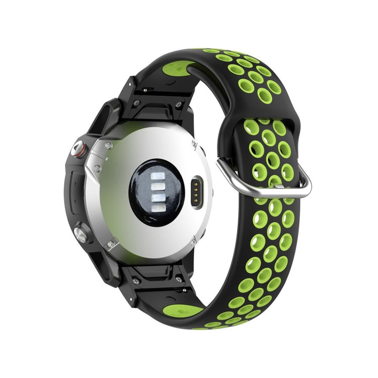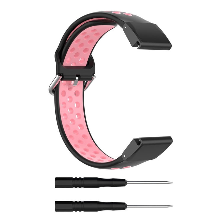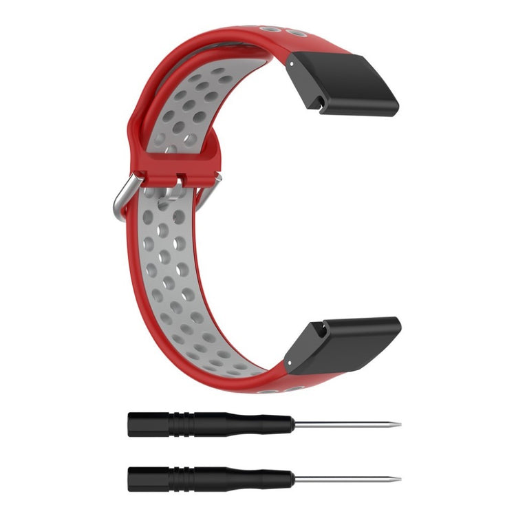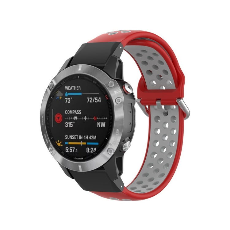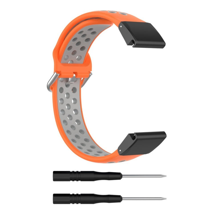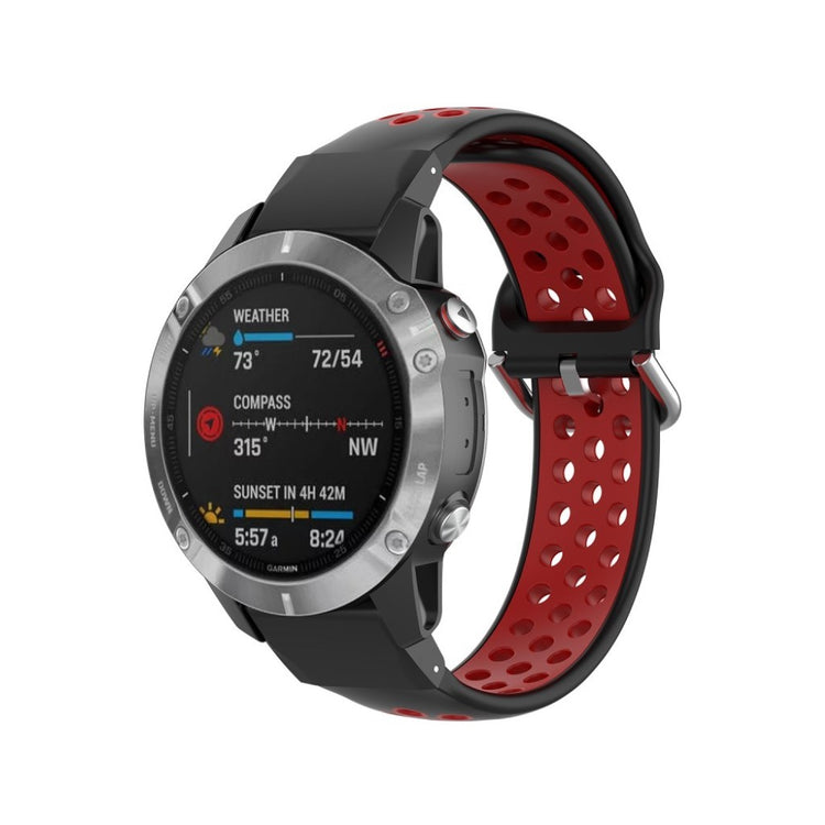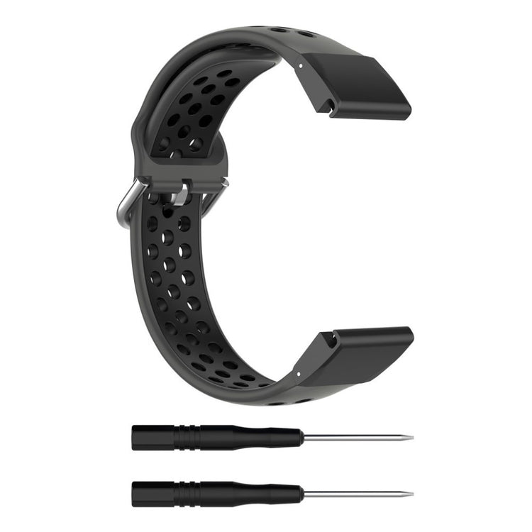 Denne tofarget silikonreimen gir din Garmin Fenix-klokke et moderne utseende. Det myke silikonmaterialet med hull sørger for rask varmeavledning og komfortabel bruk.