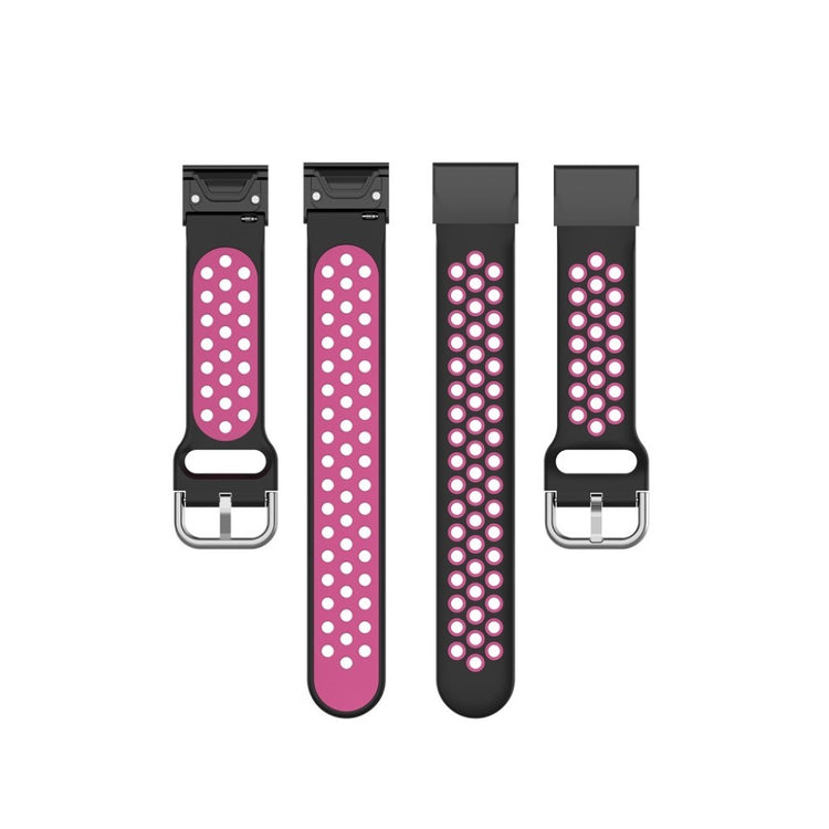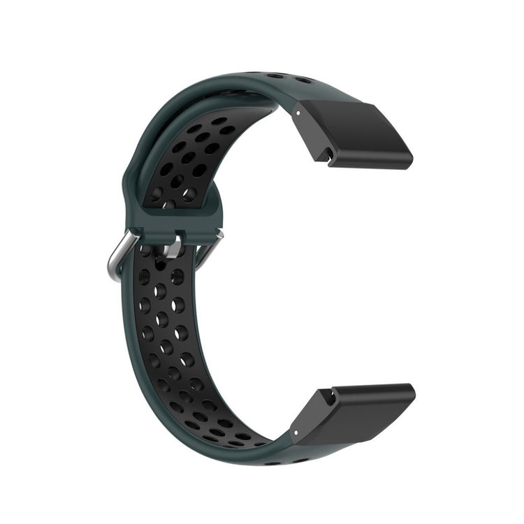 Den 22mm bi-fargede silikonklokkeremmen til Garmin Fenix 5/6/7/GPS/5 Plus/6 Pro GPS/6 Sapphire tilbyr et moderne design med myk silikon som sikrer hurtig varmefordeling og høy komfort. Materialet er sikkert og miljøvennlig, og det er ingen skade for kroppen. Remmen kan enkelt justeres for å tilpasses den enkeltes håndleddsstørrelse.